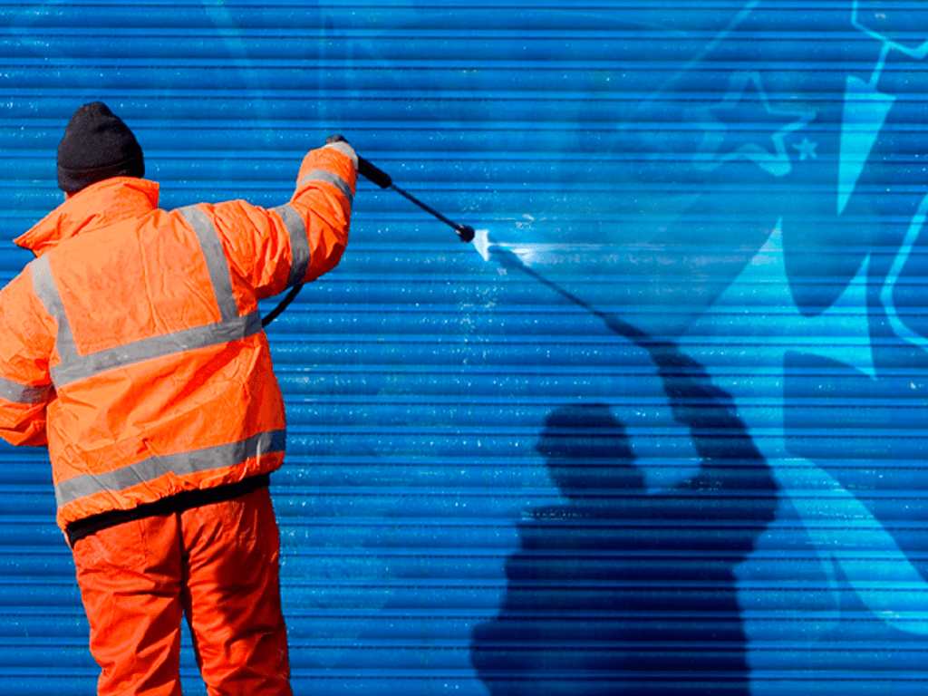 Sidewalk power washing, litter abatement, streetscape maintenance, and art mural installations